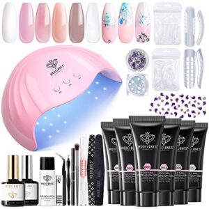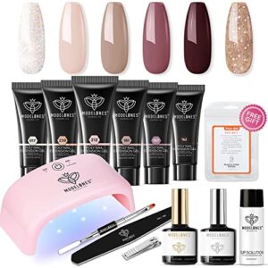 Modelones Poly Nail Extension Gel Kit – 6 Colors Poly Nails Gel Kit Nude Clear Black Pink All In One Kit Builder Glue Gel with Nail Lamp Base Top Coat Set Nail Forms French Manicure Set for Beginner Starter DIY at Home