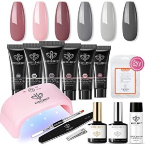 Modelones Poly Nail Extension Gel Kit – 6 Colors Nude Gray Pink Poly Nail Gel All-in-one Kit with 20W Nail Lamp Upgraded Quick Dry for Nail Art Starter French Trendy Manicure DIY at Home Beauty Gift