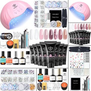 Modelones Poly Nail Gel Kit 8 Colors with 48W LED Nail Lamp Nail Extension Gel with Complete Poly Nail Art Tools Professional Starter Manicure Nail Kit Varieties of Nail Art Supplies Rhinestone Glitters Sequins Gift for Women DIY at Home