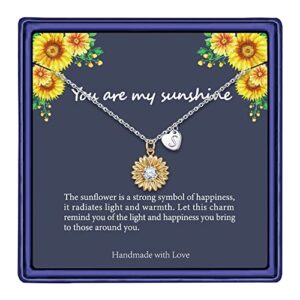 MONOZO Initial Sunflower Necklace for Women Girls, 14k Gold Plated Sunflower Necklace Pendant CZ Heart Letter Initial Necklace You are My Sunshine Gifts Sunflower Jewelry for Girls