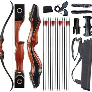 Monleap Archery 60″ Takedown Hunting Recurve Bow and Arrow Set for Adult Longbow Kit Competition Shooting Right Hand Wooden Riser 30-50LB