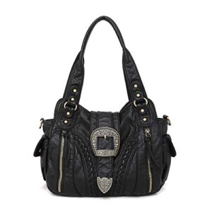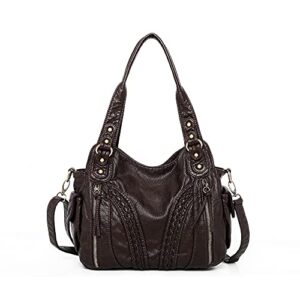 Montana West Handbags for Women Washed Leather Hobo Bags Concealed Carry Purses Stylish Satchel Handbag with Crossbody Strap