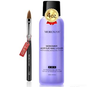 Morovan Monomer Acrylic Nail Liquid 4 oz – Professional Acrylic Nail Liquid Monomer for Acrylic Powder Acrylic Nails Extension with Acrylic Nail Brush DIY Beginners Non-Yellowing