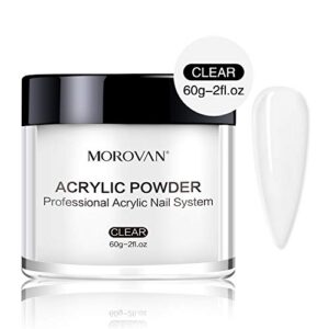 Morovan Clear Acrylic Powder 2oz Professional Acrylic Nail Powder System for Acrylic Nails Extension Odor-Free Bubble-free No Need Nail Lamp Long-Lasting (2 Ounce (Pack of 1))