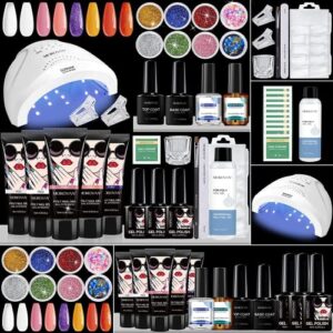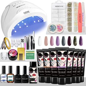 Morovan Poly Gel Nail Kit with Everything Nail Extension Gel Kit with 48W LED Nail Lamp 8 Pcs 0.5oz Poly Gel Nail Kits with U/V Light Starter Kit Nail Supplies