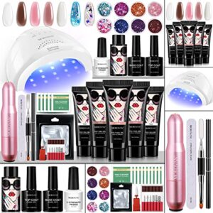Morovan Poly Gel Nail Kit with Lamp and Drill – Poly Nail Gel Extension Kit with Light 48W for Beginners Poly Gel Kits Slip Solution Nail Art Supplies