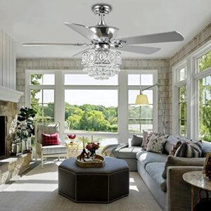 Morpholife 52”Crystal Ceiling Fans with Lights Remote Control, Modern Chrome Chandelier Fan, Indoor Elegant Fandelier Fan with Reversible Dual Finish Blades for Home Decoration, Living Room, Bedroom