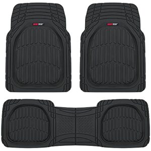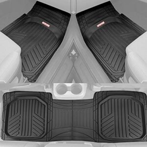 Motor Trend FlexTough Plus Black Rubber Car Floor Mats – All Weather Deep Dish Automotive Floor Mats, Heavy Duty Trim to Fit Design, Front & Rear Liners for Cars Truck Van SUV