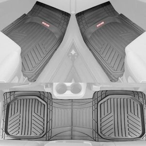 Motor Trend FlexTough Plus Gray Rubber Car Floor Mats – All Weather Deep Dish Automotive Floor Mats, Heavy Duty Trim to Fit Design, Front & Rear Liners for Cars Truck Van SUV