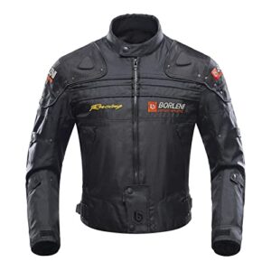 MOTORCYCLE JACKET MENS CE ARMORED BIKERS RIDING RACING WATERPROOF ALL SEASON JACKET (ORANGE, LARGE)
