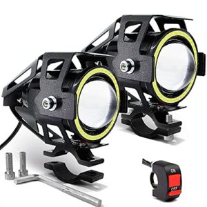 Motorcycle Headlight Cree U7 LED Fog Lights Spotlight Daytime Running Lights with White Angel Eyes Halo Ring and Switch 2-Sets
