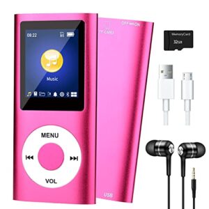 MP3 Player with Bluetooth 5.0, Music Player with 32GB TF Card,FM Radio,Earphone, Portable HiFi Music Player with Voice Recorder/Video/Photo Viewer/E-Book Player for Kids,Running,Walking,Gift (Pink)