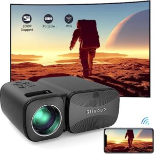 Movie Projector, Glisogo Projector with WiFi and Bluetooth 1080P Supported Mini Projector with 210″ Large Display, 7500Lumens LCD Home Theater PS4, TV Stick, Smartphone, USB, SD Card Supported