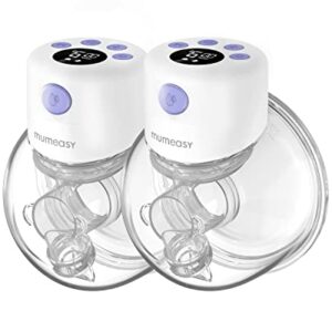 Mumeasy Double Wearable Breast Pump, Portable Electric Hands Free Breast Pump with 2 Modes & 9 Levels, S12, 24mm Flange,Purple