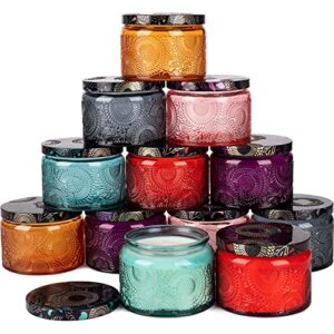 Multicolor Embossed Glass Candle Container with Tin Lid and Labels, 4 oz – Pack of 12