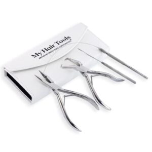 My Hair Tools Professional Hair Extension Tools Kit, Hair Extensions Remover Pliers, Micro Links Beads Hair Pulling Hook & Microbead Ring Loop Tool Stainless Steel Hair Supplies Packed in Soft Case