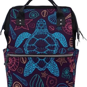 My Little Nest Large Capacity Baby Diaper Bag Sea Turtle Shells Durable Multi Function Travel Backpack for Mom Girls