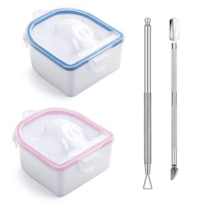 Nail Soaking Bowl, 2PCS Soak Off Bowl Gel Polish Remover ,Cuticle Remover Manicure Bowl with Triangle Cuticle Peeler and Stainless Steel for Gel Polish Remover Nail Art Tool