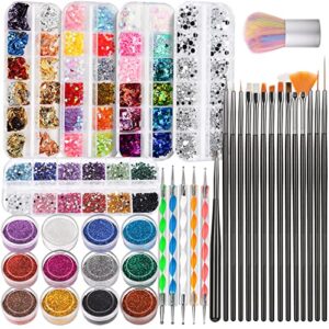 Nail Art Brush, FANDAMEI Nail Design Tools Kit with Nail Art Brushes, Nail Dotting Tools,Fine Glitter,Nail Butterfly, Nail Heart Sequins, Foil Flakes, Nail Art Rhinestones, Nail Art Decoration Kit.