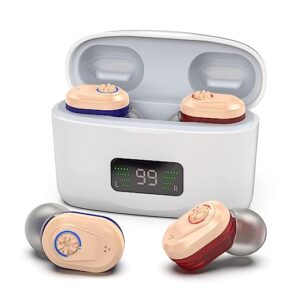 Nano Hearing Aids Rechargeable Hearing Aids for Seniors with Noise Cancelling Mini Invisible Hearing Amplifier for Adults Hearing Loss Digital Hearing Devices with Charging Case Pair,Blue & Red