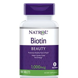 Natrol Biotin Beauty Tablets, Promotes Healthy Hair, Skin and Nails, Helps Support Energy Metabolism, Helps Convert Food Into Energy, 1,000mcg, 100 Tablets