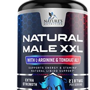 Natural Male XXL Energy & Endurance Supplement for Men with L Arginine, Tongkat Ali, Maca Root, and T-Terrestris – Stamina & Desire – 180 Tablets
