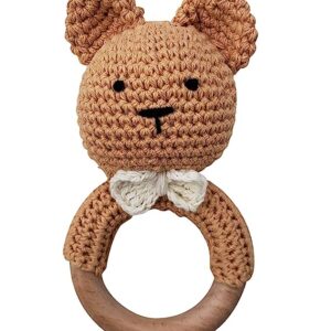 Natural Crochet Teddy Bear Teether Baby Toy Rattle Forest Friends Amigurumi on Natural Wooden Teething Ring Rattle New Born Photography (Teddy Bear Rattle)