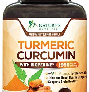 Nature Nutrition Turmeric Curcumin with BioPerine 1950mg with Black Pepper for Best Absorption, Joint & Heart Support, Made in USA, Natural Immune Support, Turmeric Supplement – 120 Veggie Caps