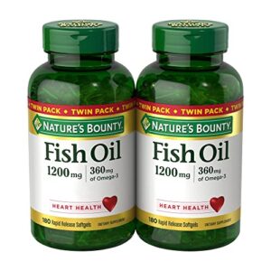 Nature’s Bounty Fish Oil 1200 Mg, Twin Pack, Supports Heart Health With Omega 3 EPA & DHA, 360 Rapid Release Softgels