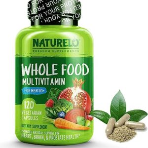 NATURELO Whole Food Multivitamin for Men 50+ – with Vitamins, Minerals, Organic Herbal Extracts – Vegan Vegetarian – for Energy, Brain, Heart and Eye Health – 120 Capsules