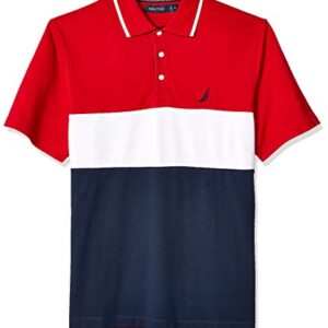 Nautica Men Short Sleeve 100% Cotton Pique Color Block Polo Shirt
