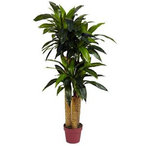 Nearly Natural – 6584 57in. Corn Stalk Dracaena Silk Plant (Real Touch), 24″ x 28″ x 57″, Green