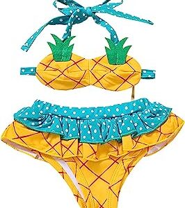 Newborn Infant Baby Girl Swimsuit 2 Pieces Bikini, Halter Strawberry/Pineapple Baby Girl Bathing Suit