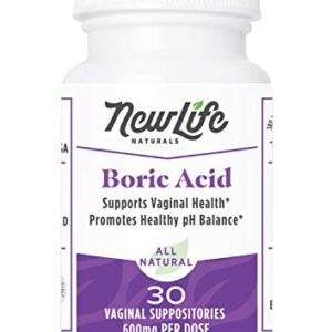NewLife Naturals – Medical Grade Boric Acid Vaginal Suppositories – 600mg – 100% Pure Womens pH Balance Pills – Yeast Infection, BV -30 Capsules: Made in USA