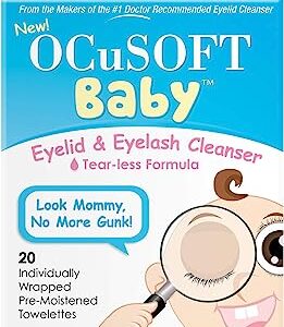 OCuSOFT Baby Eyelid and Eyelash Cleanser, Pre-Moistened Towelette, White/Blue 20 Count