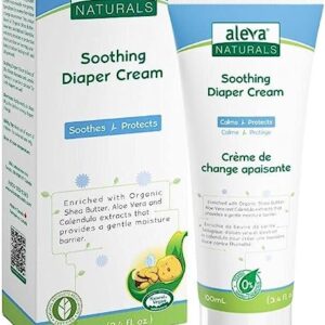 Aleva Naturals Soothing Baby Diaper Cream for Newborn and Toddlers, Fragrance Free, Organic Shea Butter, Aloe Vera, Calendula Extracts and Sensitive Skin Friendly, Clear, 3.4 Fl Oz
