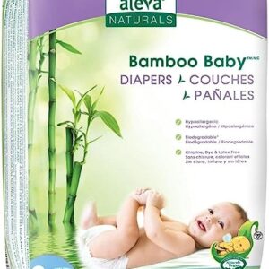 Aleva Naturals Hypoallergenic Bamboo Baby Diapers for Baby, Ultra Soft, Sensitive Skin Friendly, Biodegradable, Disposable? Size 2 (6-17 lbs/3-8 kg) | 30ct,37845