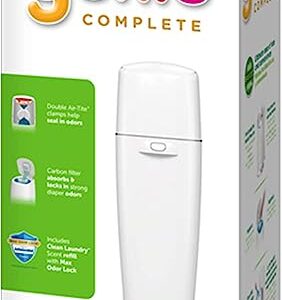 Playtex Diaper Genie Complete Pail with Built in Odor Controlling Antimicrobial, Includes Pail and 3 Clean Laundry Scent Refills, White Pail