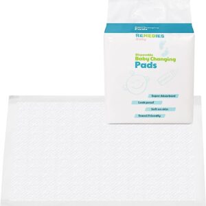 Premium Disposable Baby Changing Pad Liners (Pack of 25) by REMEDIES- Highly Absorbent, Ultra-Soft Portable Diaper Changing Underpads- Waterproof Pad Cover for Easy & Clean Diaper Changing- 17×24?