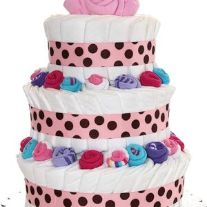 QBabyShowering 3 Tier Cute Decorated Baby Girl Diaper Cake for Babyshower (Pink)