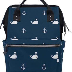 Sealife Whale with Anchor Diaper Bag Backpack for Mom Large Unisex Nappy Bags Baby Care Travel Backpack Outdoor School Laptop Bag