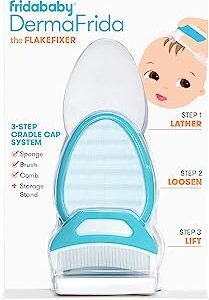 The 3-Step Cradle Cap System by Fridababy | DermaFrida The FlakeFixer | Sponge, Brush, Comb and Storage Stand for Babies with Cradle Cap