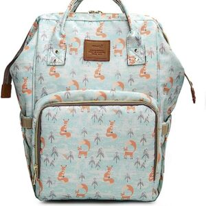 The New Multi-Function Diaper Bag for Baby Care Nappy Bags Handbags Travel Backpack Large Capacity Fox Print Light Blue