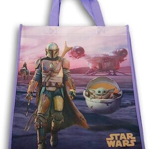 The Mandalorian with Baby Yoda Reusable Tote Bag (Purple) – 13.5 x 15 Inch