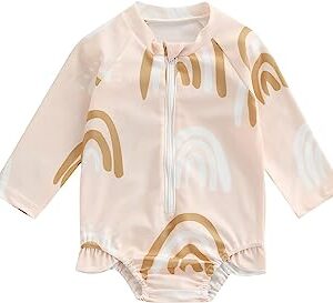 Toddler Kids Baby Girls Swimsuit Floral Rainbow Bathing Suit Swimwear Long Sleeve One Piece Ruffle Rashguard