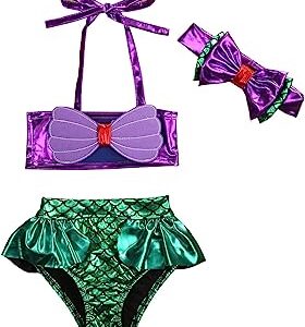 Toddler Kids Baby Bowknot Mermaid Bikini Set Top+Briefs+Headband Bathing Swimwear Sets Bathing Suit