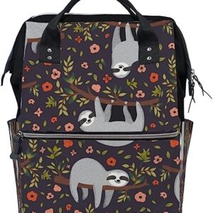 Top Carpenter Baby Diaper Bag Backpack School Bag Sloth Flowers On Deep Purple Tote Orangizer Bag Large Capacity Nappy Bag for Mom Dad Girl Boy Color 11×7.8x15in Mb7852