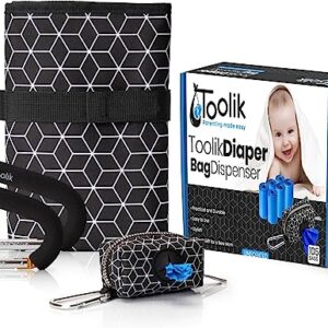Toolik Diaper Bag Dispenser with 225 Disposable Unscented Waste Bags (15 Refill Rolls) for Baby and Toddler Poop or Dirty Clothes, Essential for Travel and Quick Change on The Go, Bundle