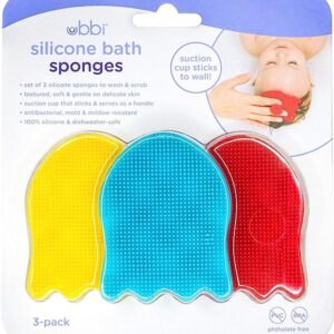 Ubbi Jellyfish Silicone Multi-Purpose Bath Sponges for Washing and Play – Baby Bathing Essentials for Newborns, Baby Massaging Bath Brushes for Dry Skin and Cradle Cap, Set of 3