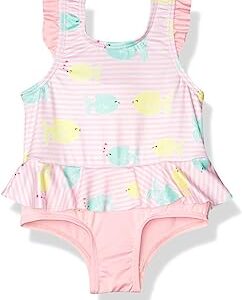 Wippette Girls’ Toddler Baby One Piece Swimsuits with Ruffle Trim
